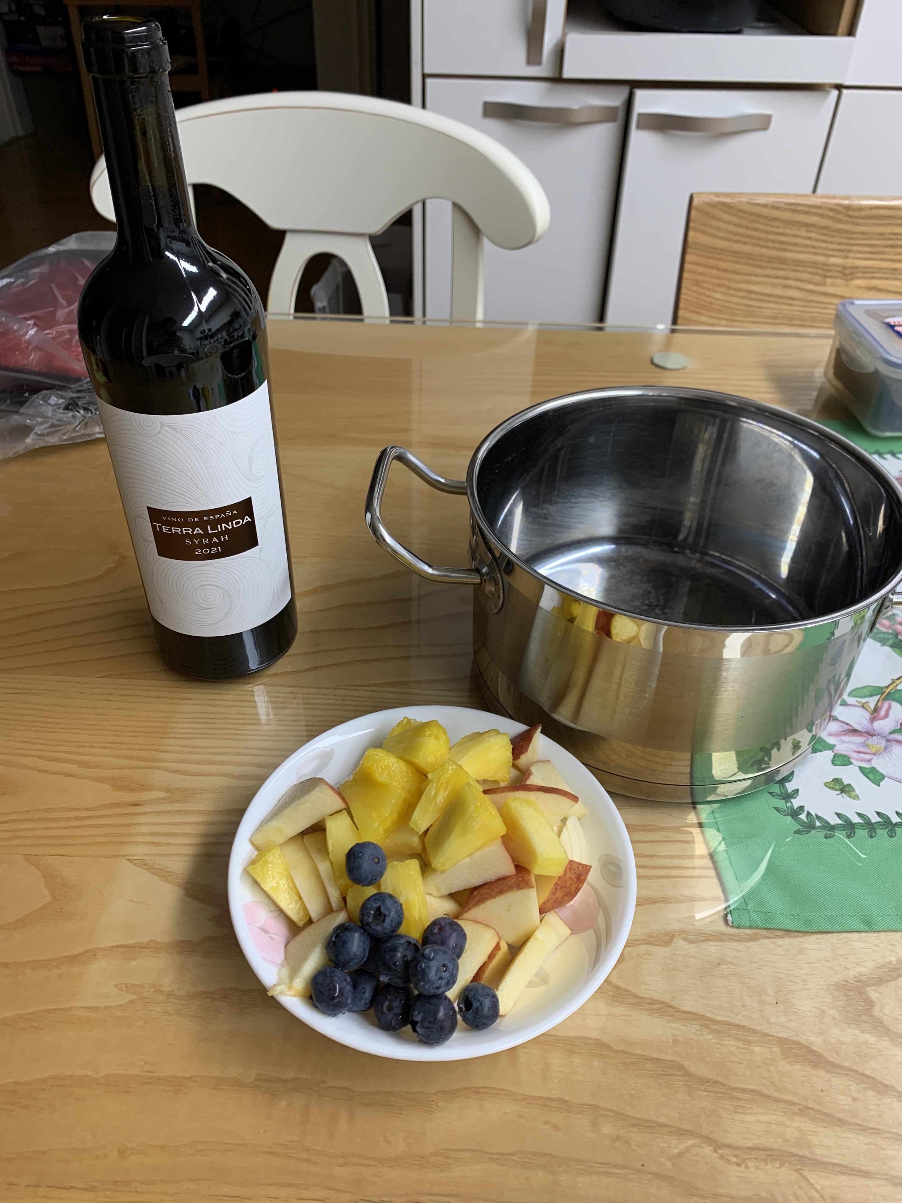 안녕하세요 ~ 신선의 즐거운 세상입니다. 오늘은 뱅쇼를 만들어볼 거예요. 와인과 과일 그리고 냄비를 준비해 주세요. 그리고 빼먹은 홍삼, 생강, 계피, 쌍화차를 준비해 주세요. 냄비에 와인 그리고 홍삼을 부어주세요. 이제 생광 과 계피 그리고 과일들을 넣어주세요. 쌍화차를 넣어주시면 됩니다. 오렌지를 넣지 못해서 추가로 넣었습니다. 이제 펄펄 끓이다가 약불로 끓여주시면 됩니다. 이제 ~ 뱅쇼가 완성이 되었어요. 맛은 적당히 달고 깊은 포도맛이 났고 쌍화차 냄새가 나서 좋았습니다. 여러분들도 따뜻한 뱅쇼 한잔 어떠신가요?