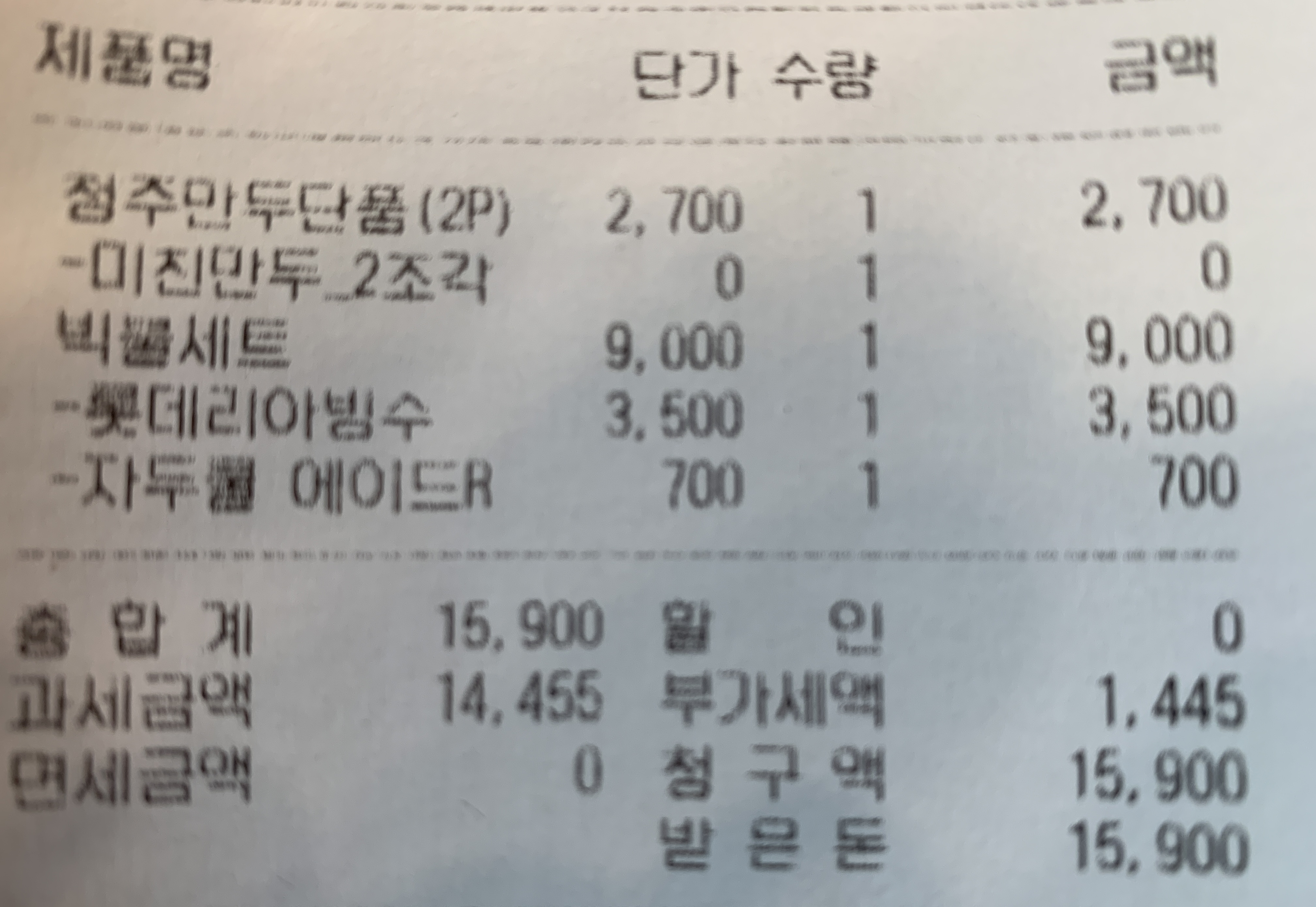 이렇게 주문을 해서 15900원이 나왔습니다.