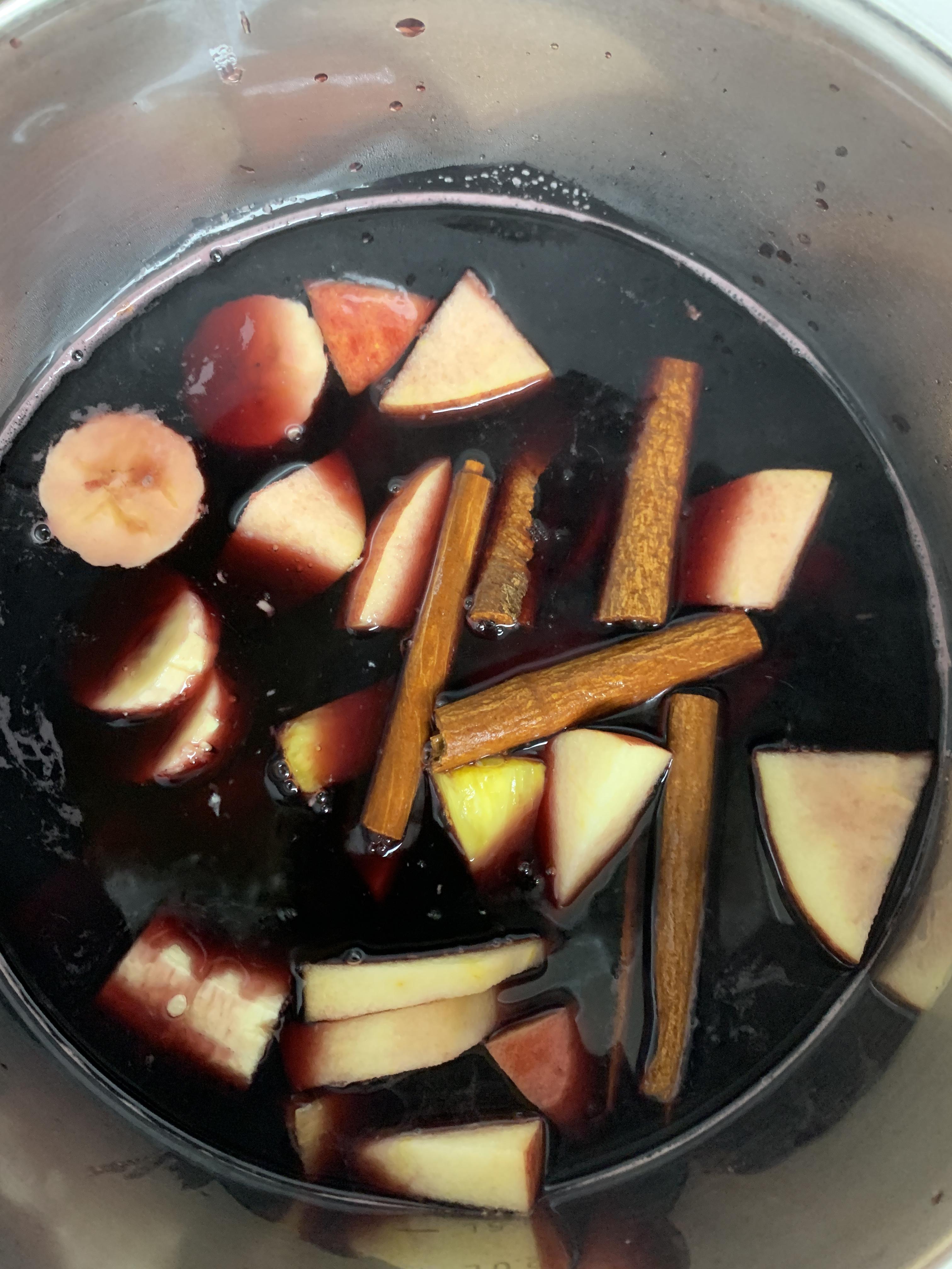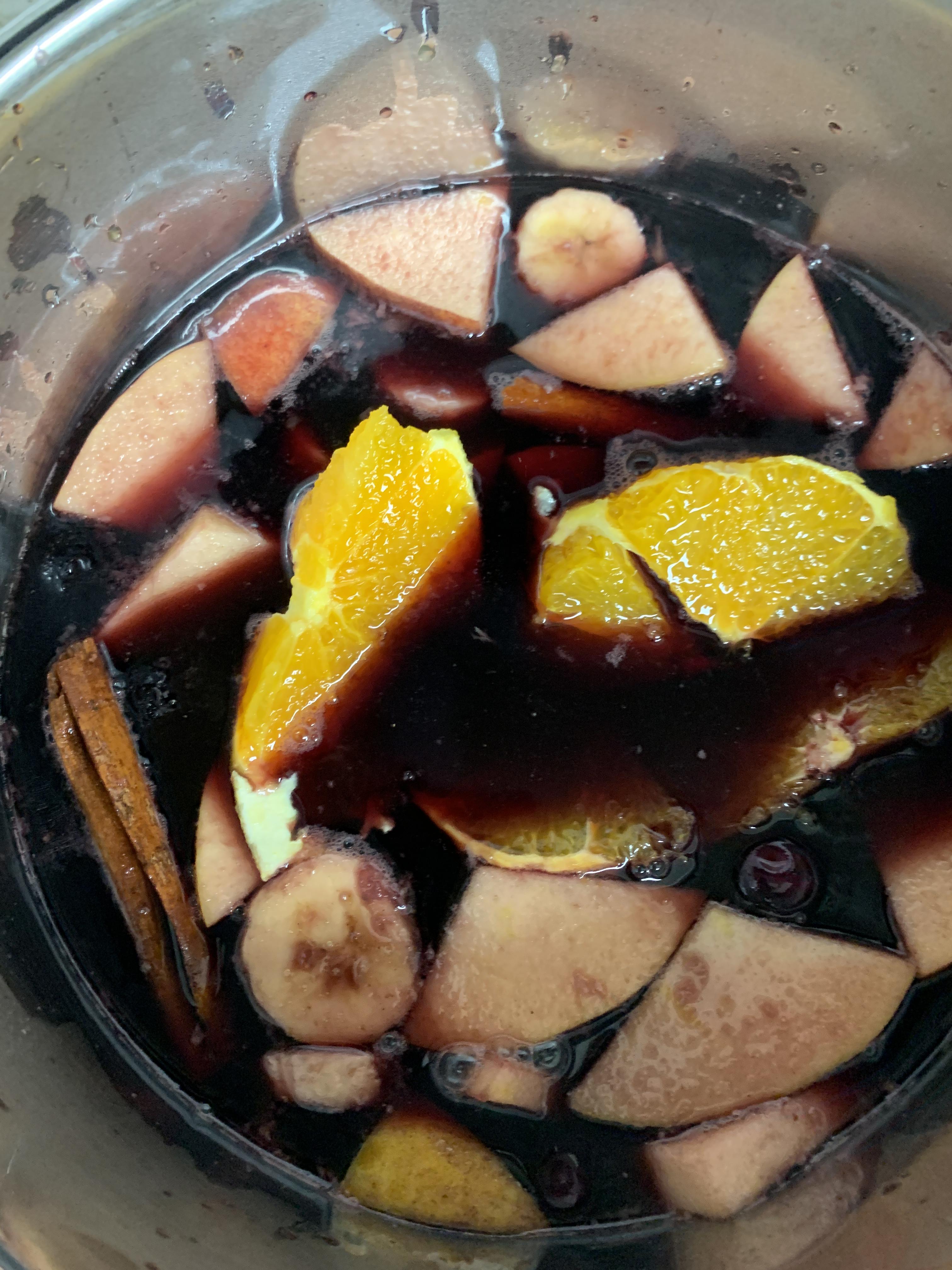 와인과 과일 그리고 냄비를 준비해 주세요.