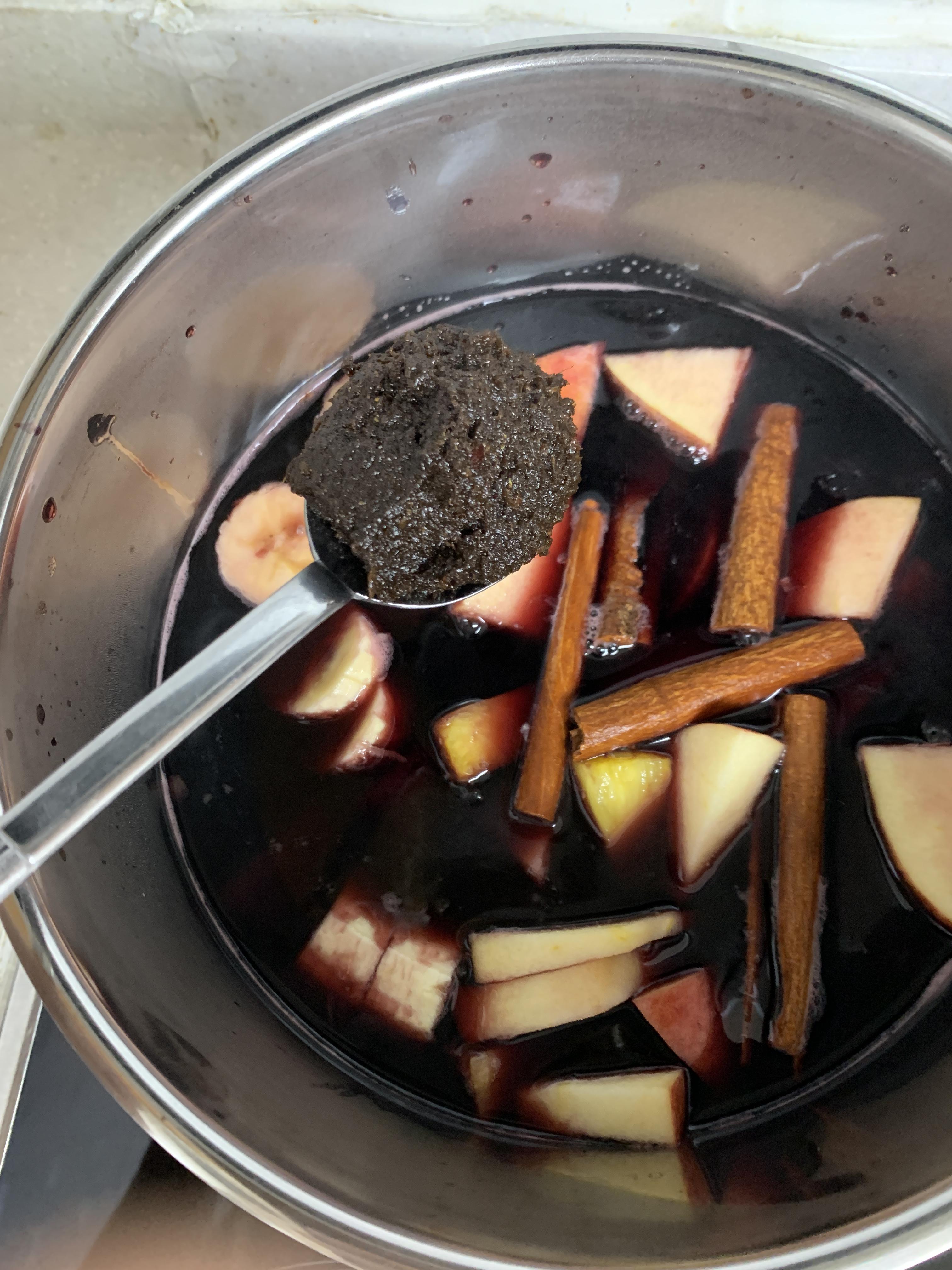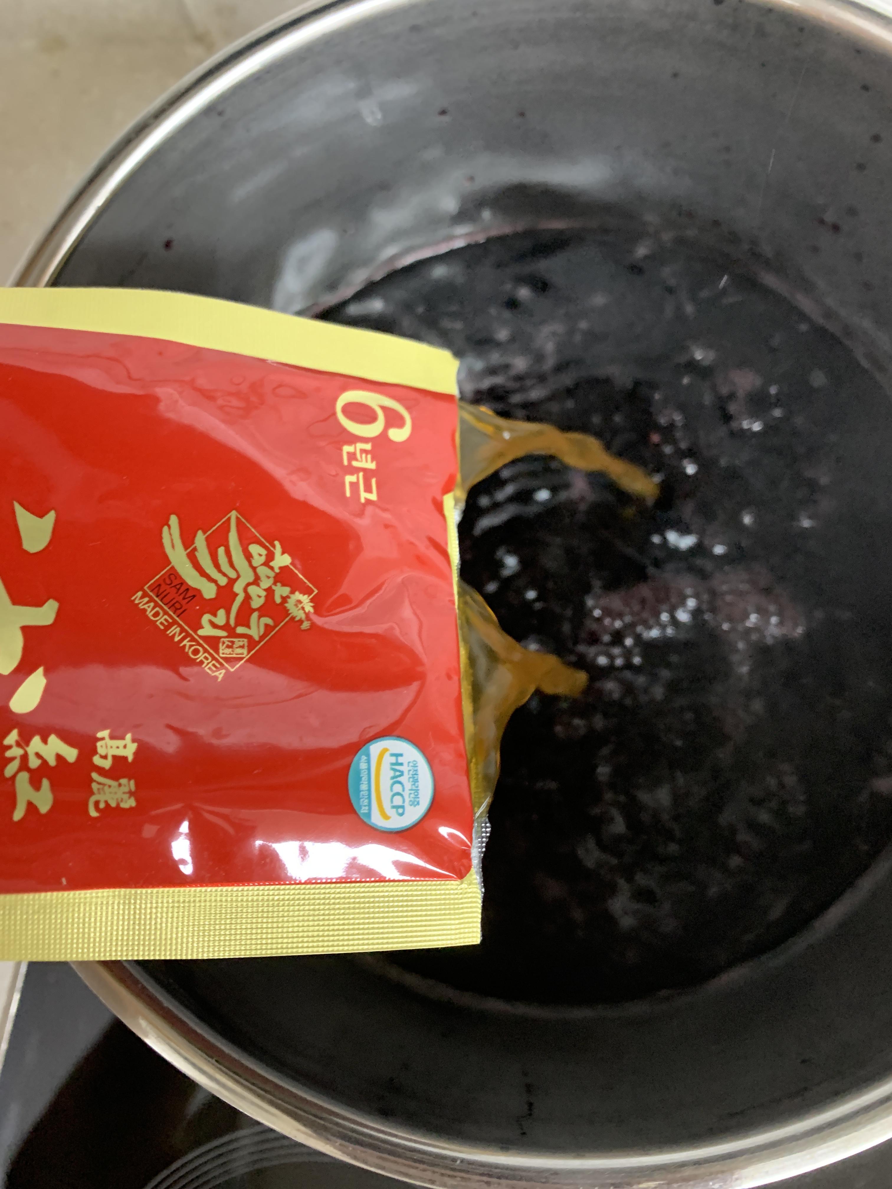 냄비에 와인 그리고 홍삼을 부어주세요.