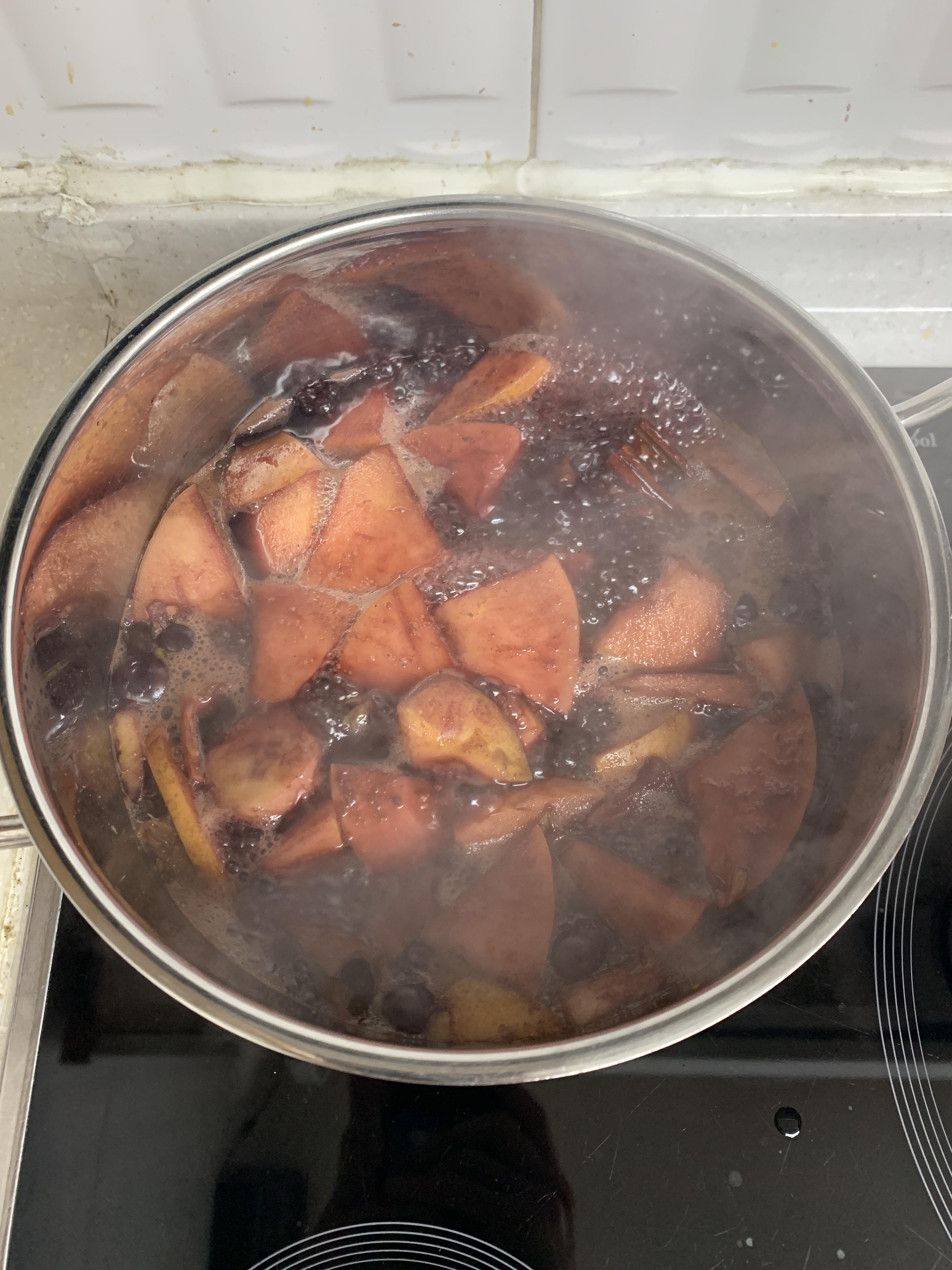 와인과 과일 그리고 냄비를 준비해 주세요.
