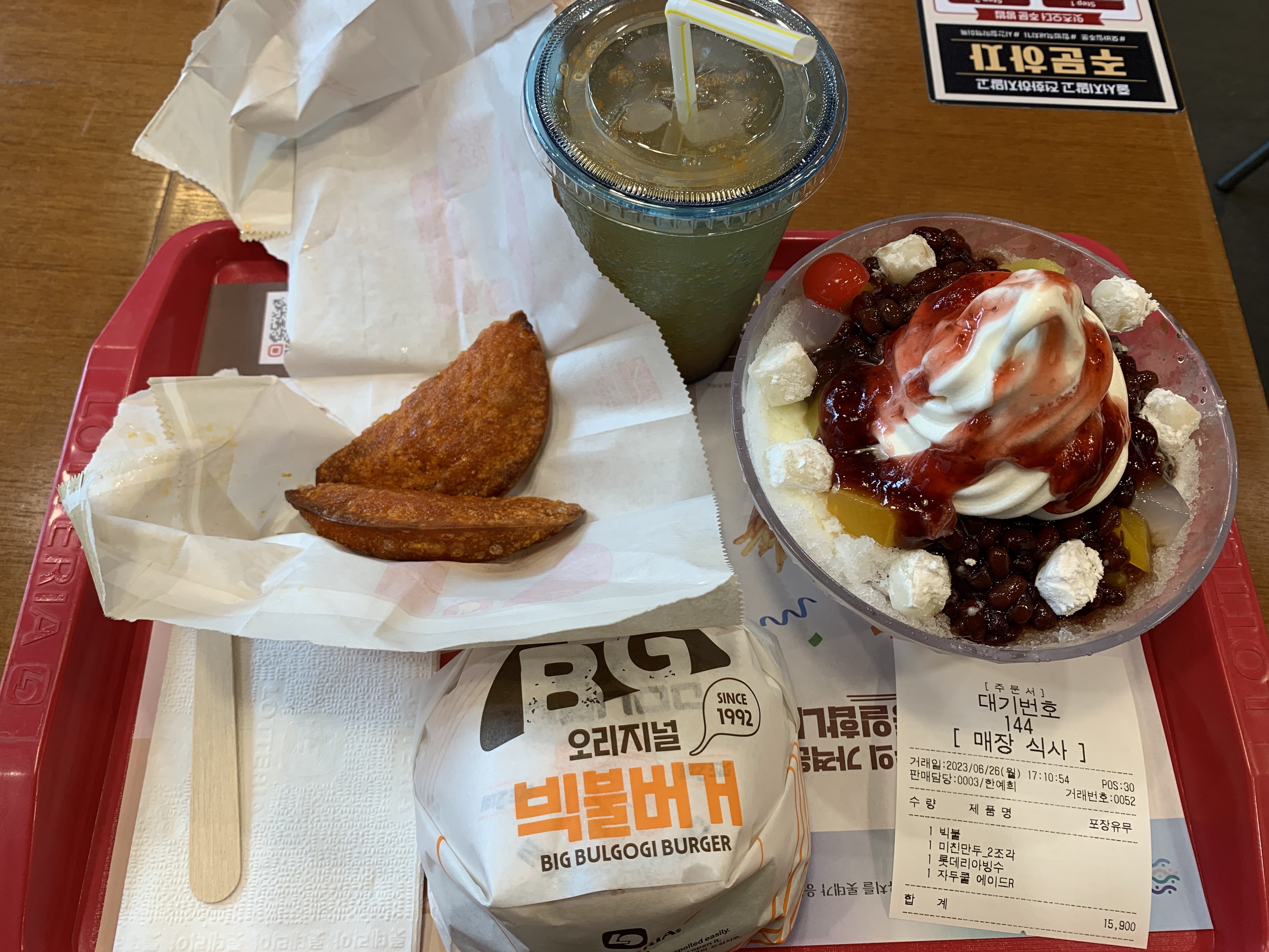 오늘은 롯데리아에 가서 청주 미친 만두를 먹는 날 이에요.